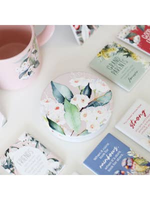 17. Native Blooms White Floral Ceramic Coaster